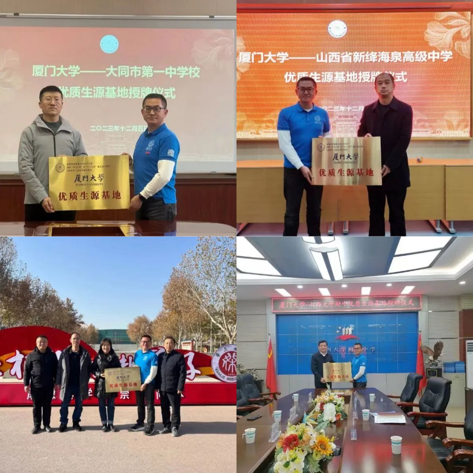 12月5日-8日,厦门大学山西招生宣传组赴山西省大同市第一中学校、山西大学附属中学校、运城市康杰中学、新绛县海泉学校开展优质生源基地挂牌、科普讲座、师生座谈交流等招生宣传活动。宣传组由建筑与土木工程学院党委副书记刘建敏、建筑系副主任李苏豫副教授、党务秘书郑建斌、工程师林跃华组成。