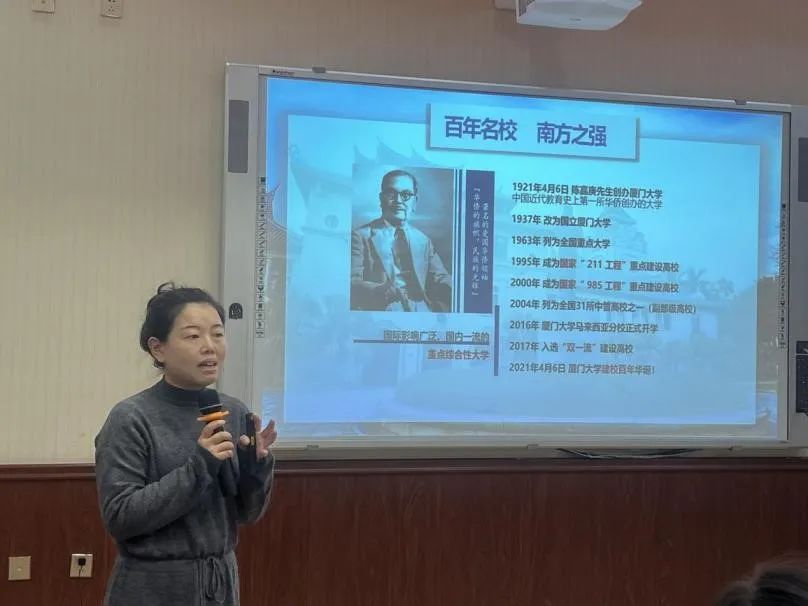 在学科入门讲座中,李苏豫详细讲述了厦门大学校园建筑的嘉庚风格特点,展示建筑学专业学子的优秀作品,以及邀请在厦大就读的大同一中校友展示在校学习生活情况,通过朋辈交流的方式带给山西的同学们别样的全新体验。