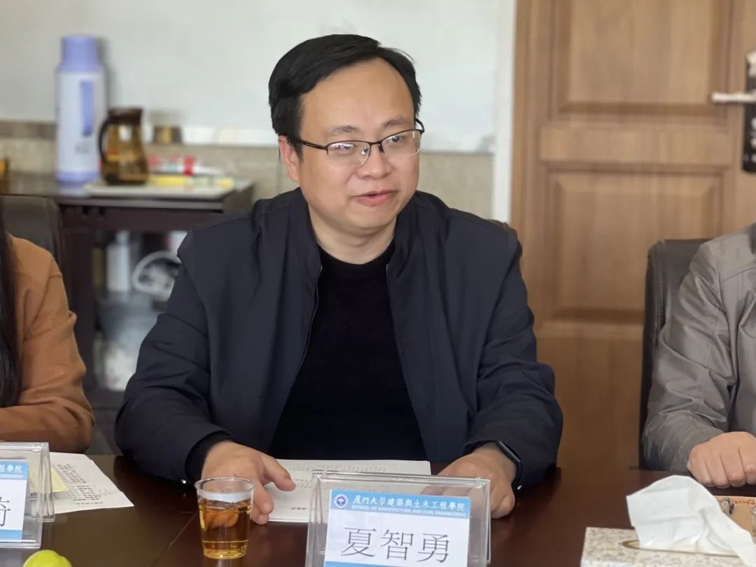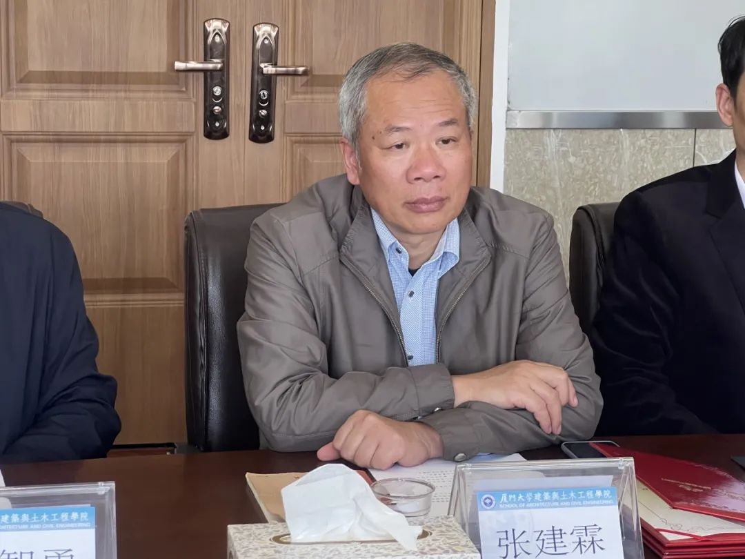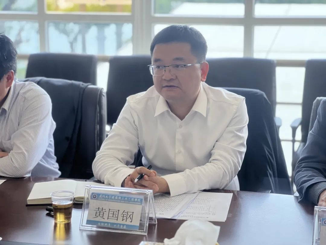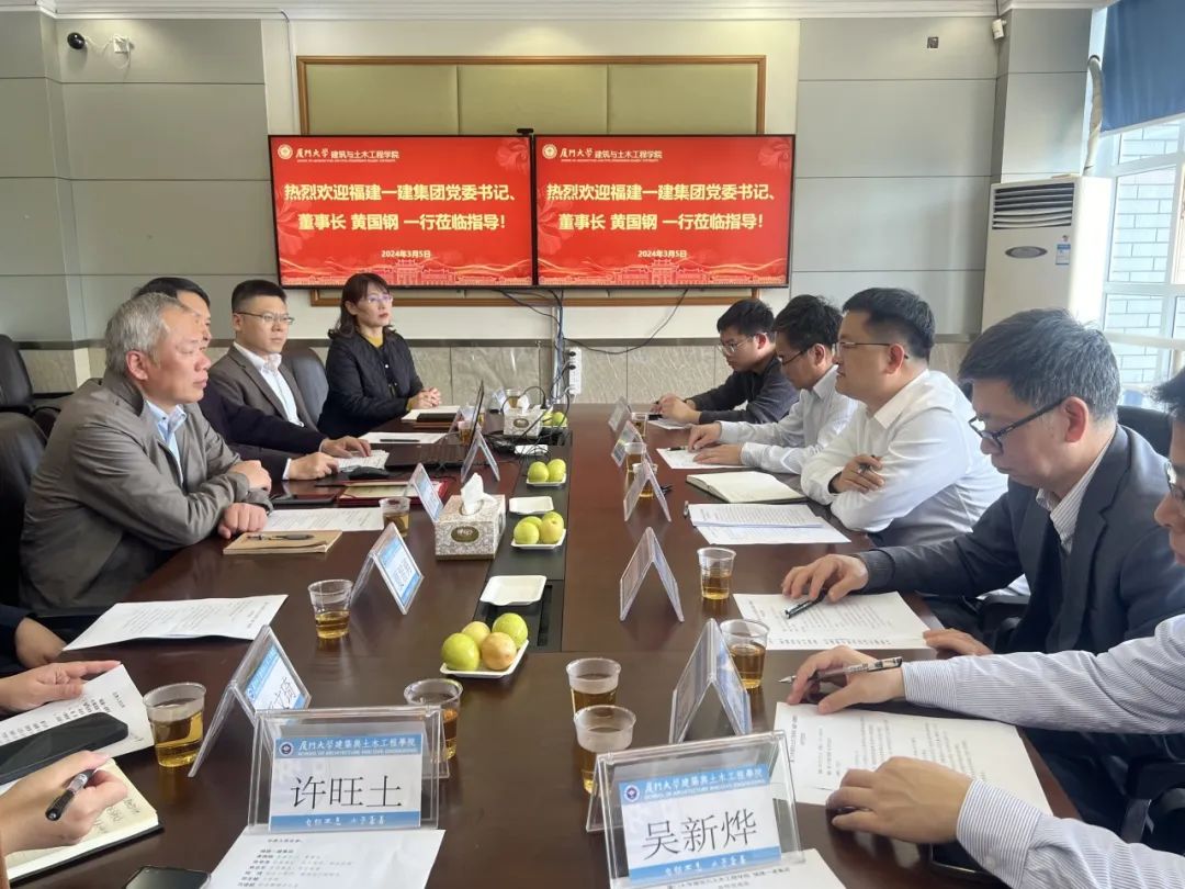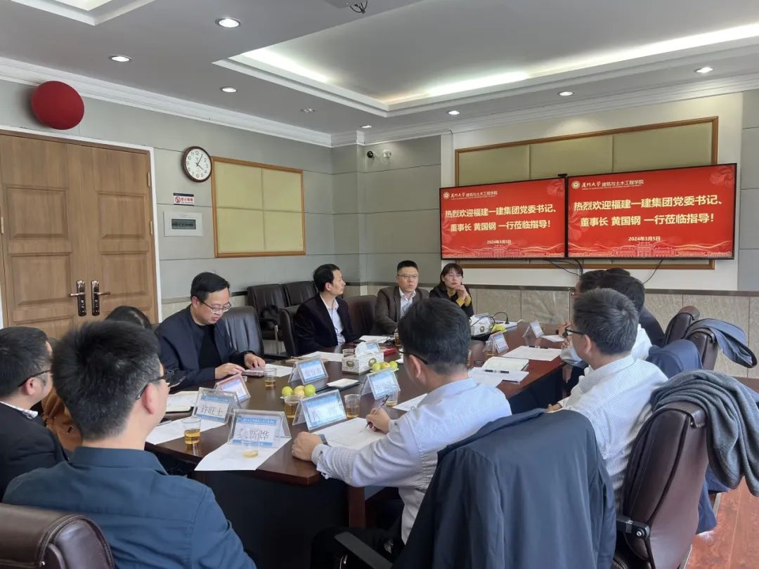 3月5日,建筑与土木工程学院与福建一建集团的合作交流会在曾呈奎楼208室举行。建筑与土木工程学院院长张建霖教授,副院长王东东教授,科技处副处长夏智勇,建筑设计研究院有限公司副总经理刘建元,科技处严文琦,土木工程系主任高婧教授,城市规划系主任许旺土教授,土木工程系党支部副书记吴新烨副教授,福建一建集团(以下简称集团)党委书记、董事长黄国钢,总工程师、副总经理张常涛,副总经理林忠东,副总工程师、建筑设计院院长陈强出席了本次合作交流会。