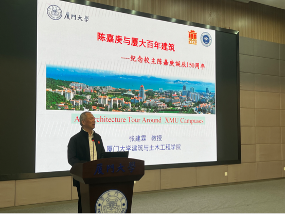 为迎接厦门大学建校103周年,4月3日上午,“陈嘉庚与厦大百年建筑”专题讲座在翔安校区德旺图书馆2号报告厅举行,本次活动也是陈嘉庚先生诞辰150周年系列活动之一。厦门大学建筑与土木工程学院院长、国家一级注册结构工程师张建霖教授担任主讲人。校长助理、翔安校区管委会主任陈光,美育与通识教育中心副主任、教务处副处长黄艳萍,厦门大学出版社党总支书记张伟,教师工作部副部长杨建中,建筑与土木工程学院党委副书记邹海燕以及翔安校区管委会各部门负责人出席讲座,250余名师生代表参加活动。