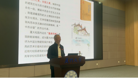 张建霖以校主陈嘉庚先生的生平经历为起点,娓娓道来厦门大学从创立之初到如今的百年辉煌历程。他将校园建筑的变迁与陈嘉庚先生建筑思想的演进紧密相连,使得整个叙述既富有历史感又充满生动的画面感。