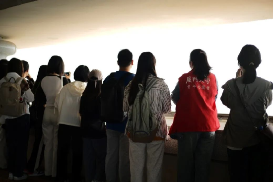 全体成员在志愿者的引导下,了解校区内的每一栋建筑,“映雪公寓”“成智楼”“爱秋体育馆”,校区内的每栋建筑无不延续着嘉庚建筑风格,到达德旺图书馆前广场后,集体到陈嘉庚先生的雕像表示了深深的敬意。