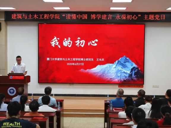 “为什么这么想入党?是因为当时一入校,就被厦大校训‘自强不息 止于至善’这八个字深深打动,它仿佛就是我个人成长经历的见证者”。学院2025届毕业生博士党员、扬才班首期班长王长庆以“我的初心”为题,以 “十年党龄” 为线,回顾从学生干部到科研骨干的实践历程,一句 “初心如磐” 道尽坚守。新老党员以不同经历诠释同一信仰,让在场师生深刻感受到党的事业在代际传承中焕发的生机与力量。