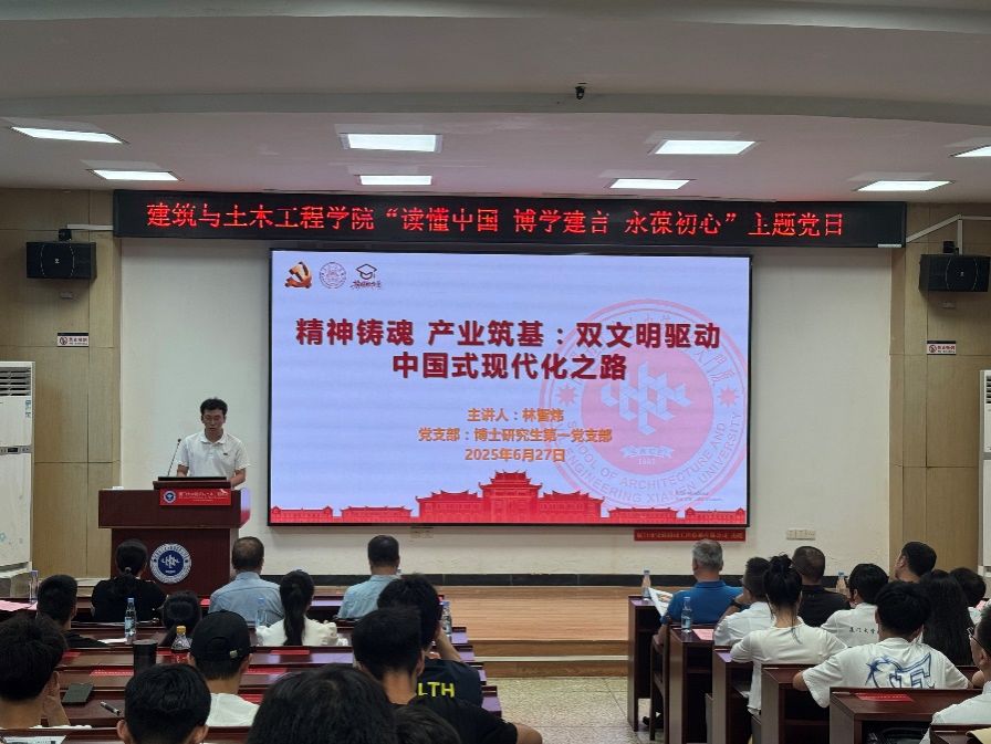 为迎接中国共产党成立104周年,6月27日下午,厦门大学建筑与土木工程学院举办“读懂中国、博学建言、永葆初心”主题党日活动。该活动是学院“读懂中国”系列活动的第八期,也是“榜样的力量”系列活动之一。出席活动的嘉宾有校基层党建联络员邱七星,学院关工委常务副主任陈和祥,学院党委副书记、院长张建霖,学院党委副书记刘建敏、邹海燕,厦门大学扬才班学员代表,学院各党支部、团支部的老师同学。本次活动由2024级土木工程系硕士研究生范思盈主持。