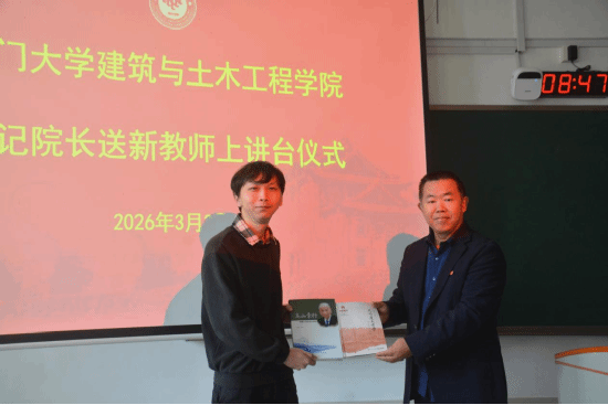春风化雨润桃李,弦歌不辍启新程。3月3日上午,建筑与土木工程学院在南强二210教室为建筑系叶征冰助理教授举行“书记院长送新教师上讲台”仪式,学院党委书记王绍森教授,院长张建霖教授,人事秘书张小丽,本科教学秘书余雅雯、陈思佳出席仪式,建筑类2025级本科生共同见证这一温暖时刻。仪式由建筑系主任石峰教授主持。
