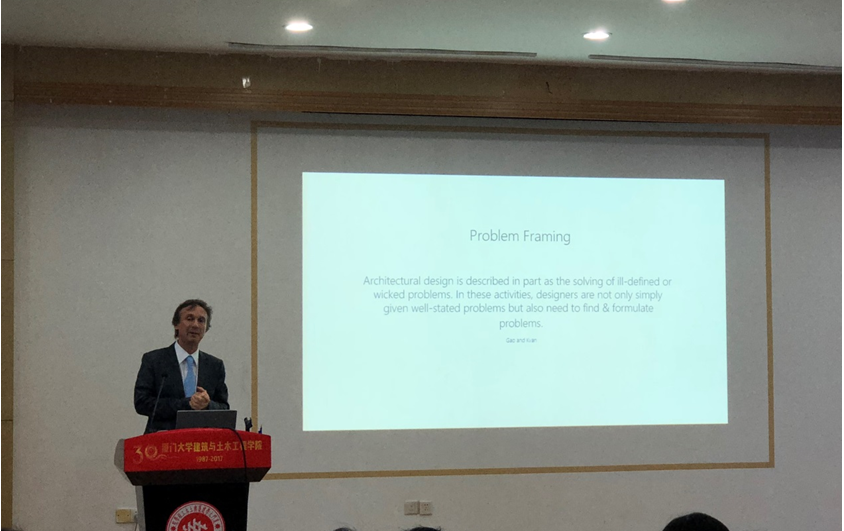 3月29-30日,新西兰惠灵顿维多利亚大学日在我校举行。29日,惠灵顿维多利亚大学(以下简称“维大”)助理校长布莱尔麦克雷(Blair McRae)率团访问我校,就今后两校的合作进行商谈。30日上午,学院院长王绍森教授出席大学日开幕式。30日下午,维大建筑与设计学院院长马傲林(Marc Aurel Schnabel)为我院师生做了一场“建筑设计包容”的讲座。马傲林教授认为,近年来,设计行业的发展影响着设计实践的各个方面,建筑行业间的关系、建筑技术、建筑材料、建筑设计工具以及建筑师的工作方式等各方面的变化速度迅猛,快于建筑教育系统的反应速度。网络作为知识共享的工具,为创新设计提供了潜在且富有成效的运作基础。这些变革引起的具有反馈作用的互动活动,使设计超越了传统领域,使参与者在跨学科共同体中学习到创新的知识,从而实现集体与社会的高水平智力。学院副院长王东东教授主持讲座,凌世德教授、王量量助理教授等师生参加讲座。