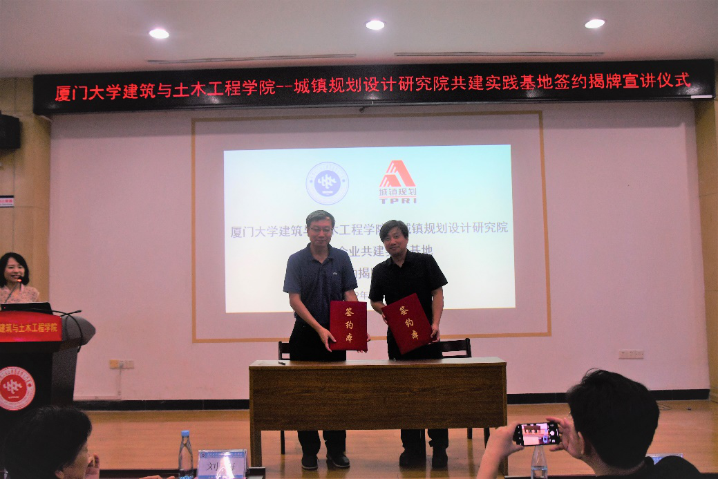 “厦门大学建筑与土木工程学院—中国建筑设计研究院城镇规划院”高校-企业共建实践基地在中国建筑设计研究院城镇规划院建立厦门大学校外实践教育基地,并在厦门大学建立分基地,希望以合作共建为契机,以产业化和新型城乡建设的可持续发展为主要内容,探索设计、研发、教学相融合的产学研体系,培养国家亟需的新型综合创新人才。