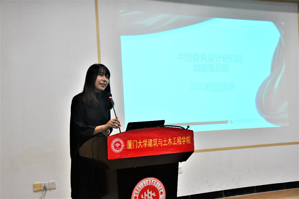签约仪式结束之后,中国建筑设计研究院城镇规划院人力资源部王莹主任为建筑、规划及土木专业的本科生和研究生,做了关于基地实践建设、招聘实习生及毕业生等方面的宣讲。