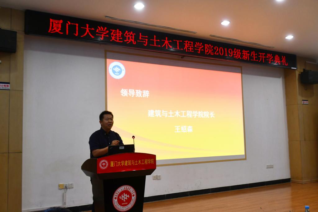 9月12日上午8点,厦门大学建筑与土木工程学院2019级本科新生开学典礼在曾呈奎楼118报告厅隆重举行。建筑与土木工程学院党委书记刘梅,党委副书记、院长王绍森教授,副书记王瑛慧,副院长李立新、王东东、文超祥,建筑系副主任(主持工作)张燕来,城市规划系副主任(主持工作)杨哲,系副主任张若曦,土木工程系副主任高婧、张建国,城市规划系张其邦老师,建筑系洪晓强老师,学院团委书记李加冕等人及厦门大学建筑与土木工程学院2019级全体本科新生出席了本次典礼。典礼由学院党委副书记黄俊清主持。