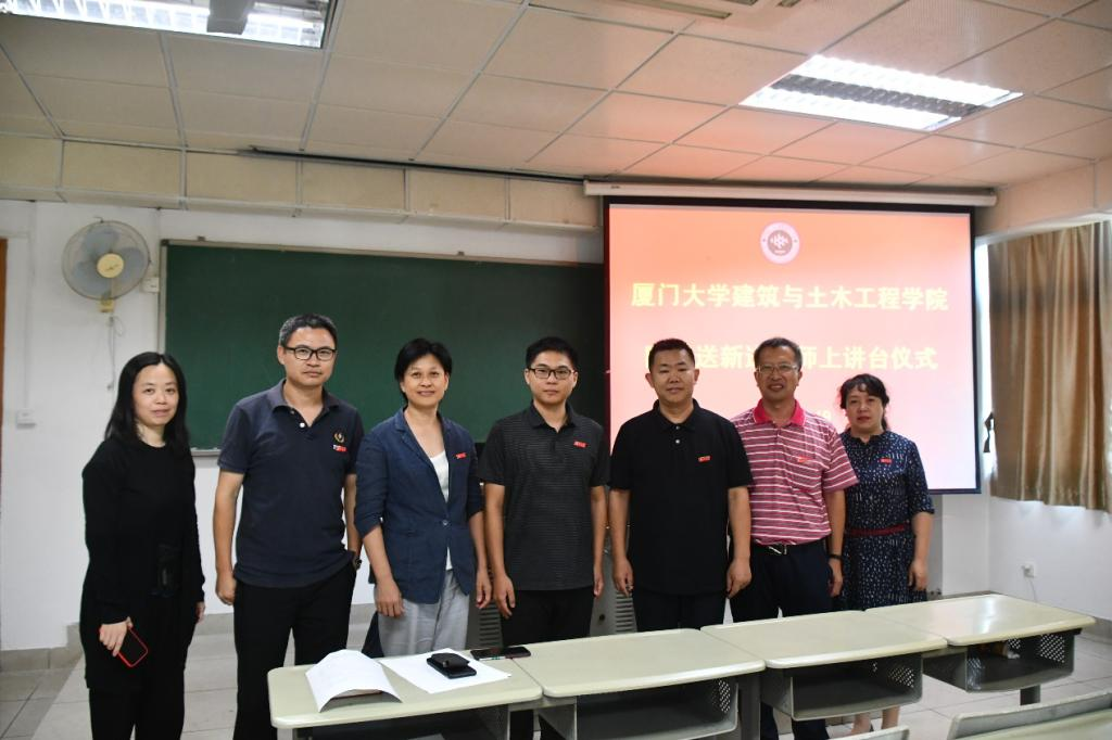 9月19日下午2点,厦门大学建筑与土木工程学院“院长送新进教师上讲台仪式”在嘉庚五302教室举行,建筑与土木工程学院党委书记刘梅,院长王绍森教授,建筑系主任(主持工作)张燕来、建筑系副系主任刘姝宇、学院办公室主任王荣华等人及建筑系新进教师洪晓强参加本次仪式。本次仪式由建筑系主任张燕来主持。