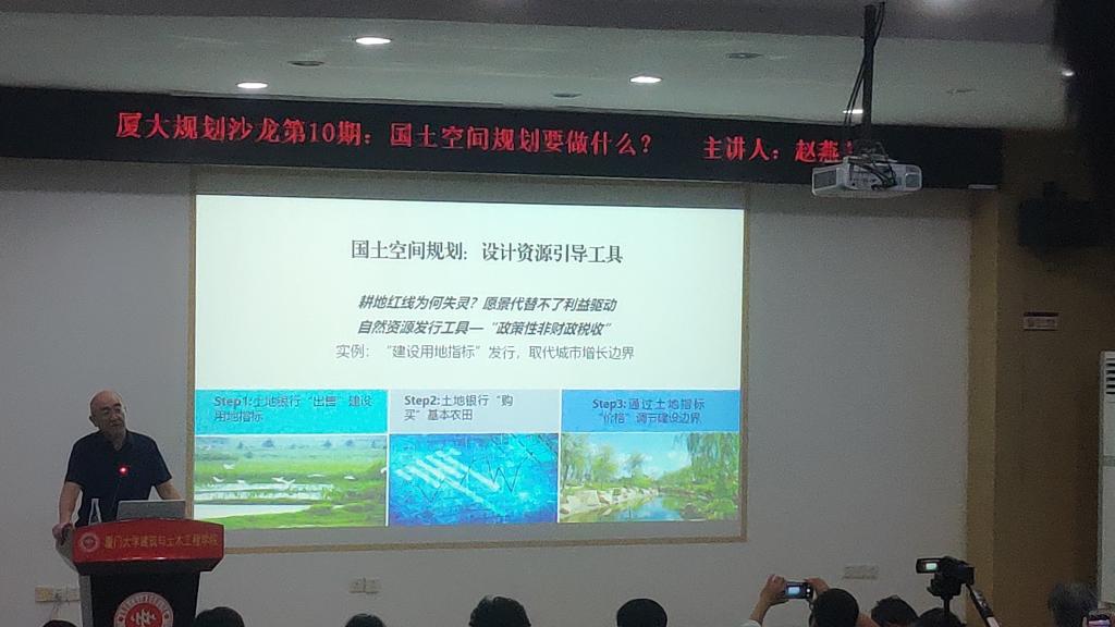 对于如何进行规则性改革,他给出了自己四点建议:其一为“国土空间规划”应当服务各级政府的事权;其二是“国土空间规划”应当发现自然资源资本化途径;其三则为“国土空间规划”的目的应当实现全民自然资源资产的保值升值;其四以国土空间规划”应当实现政府财政收入重心从资产到现金流的转变等来展开论述。此外,针对沙龙的内容,在场的同学及厦门市规划届人士踊跃提问,赵燕菁老师也做出了详细耐心的解答。