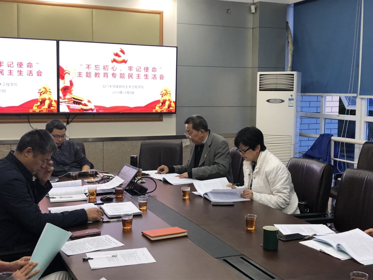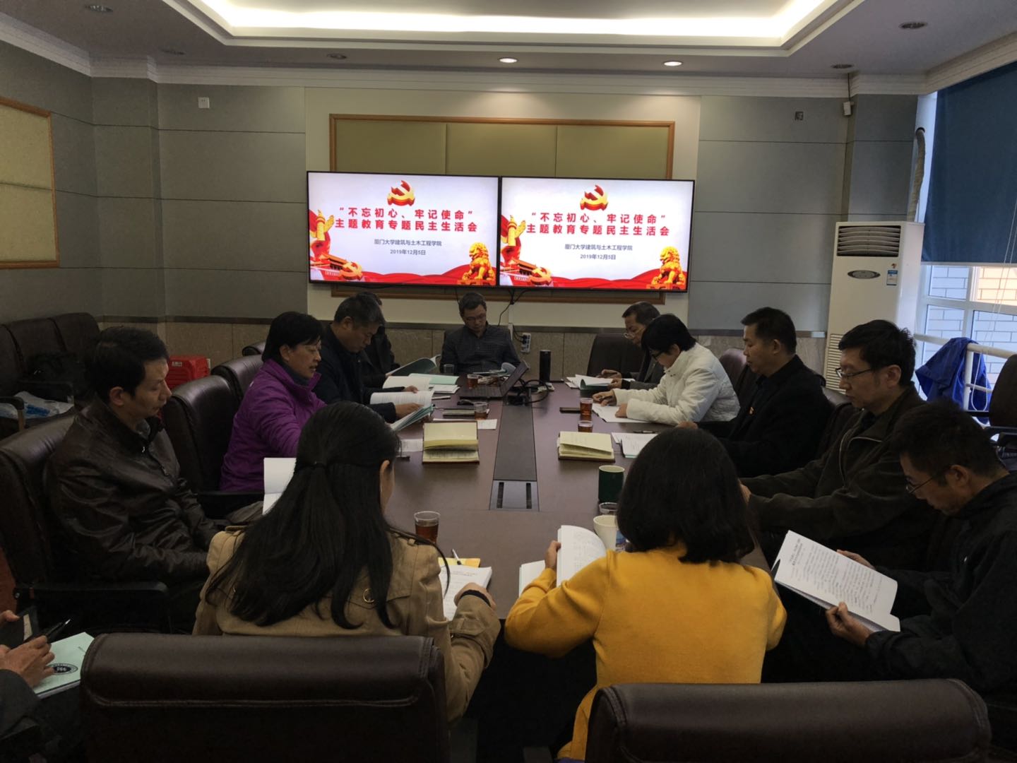 2019年12月5日,建筑与土木工程学院于曾呈奎楼208会议室召开学院2019年“不忘初心、牢记使命”主题教育专题民主生活会,学校第二巡回指导组成员、校宣传部副部长楼红英,校基层党建工作联络员黄定基到会指导,学院中层党员领导干部,系正副主任、工会主席、教工党支部书记等参加会议。会议由学院党委书记刘梅主持。