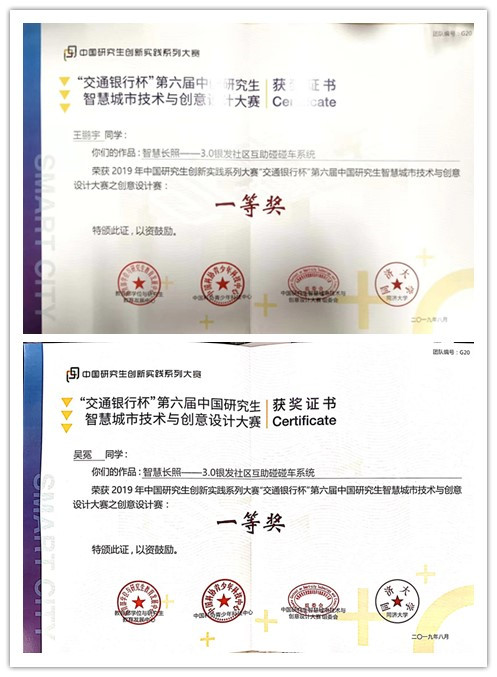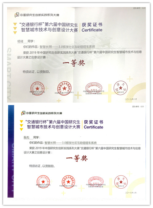 团队介绍:殷彪、杨绪、王鹏宇、吴冕四位研究生完成的作品《智慧长照3.0——银发社区互助碰碰车系统》基于无人车和5G技术,将养老问题与城市空间结合,构建了智慧养老服务链。在社区内,老年人通过一键呼叫的方式呼叫互助碰碰车,方便老年人安全出行。在车上,备有应急药品,老年人可在车上进行一些基础性的身体检测。六边形的无人车可相互组合成不同的活动场所,方便老年人群品茗、下棋、聚会,促进老年人之间的交流。该作品参加第六届中国研究生智慧城市技术与创意设计大赛,获得全国一等奖,并受组委会邀请作为代表队伍进行公开路演答辩(代表队伍共六支),在现场的路演中,也得到了在场评委与观众的一致认可和称赞。厦门大学获得本次大赛“优秀组织奖”,创我校历届参赛的最好成绩!