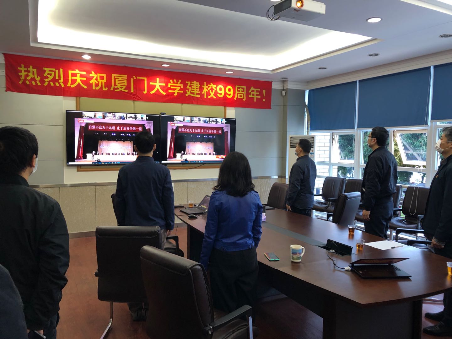 2020年4月6日上午,厦门大学建校99周年庆祝大会在建南大会堂隆重举行,校党委书记张彦、校长张荣等校领导,原校长、厦门大学校友总会理事长朱崇实等校级老领导,校党委常委、校长助理在建南大会堂主会场出席庆祝大会。校党委副书记、副校长李建发主持大会。此次大会通过网络直播的方式,并在全球校友会、校内各单位设400个网络分会场,邀请各地校友、学子、各界人士在云端相聚,共同为厦大庆生,在线收看直播人数突破100万人次。建筑与土木工程学院作为分会场,线上线下共计组织900余师生共同观看直播。