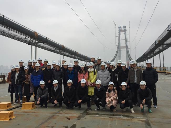 特别难得的是徐恭义大师还亲自带领学生登上由自己担任总设计师的中国首座公铁两用悬索桥——五峰山长江大桥和中国最大跨径悬索桥——武汉洋泗港长江大桥进行实地考察。亲眼见证当代桥梁大师创造的中国桥梁新纪录,同学们无不深感震撼:“洋泗港桥和五峰山桥不仅代表了中国桥梁先进水平,更是中国国家综合国力的体现,那种民族自豪感油然而生。”