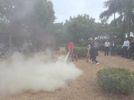 随后,学院办公室主任王荣华为大家详细讲解了灭火器的种类、特点、使用方法及注意事项,并就灭火器的正确使用方法进行了模拟现场演示。