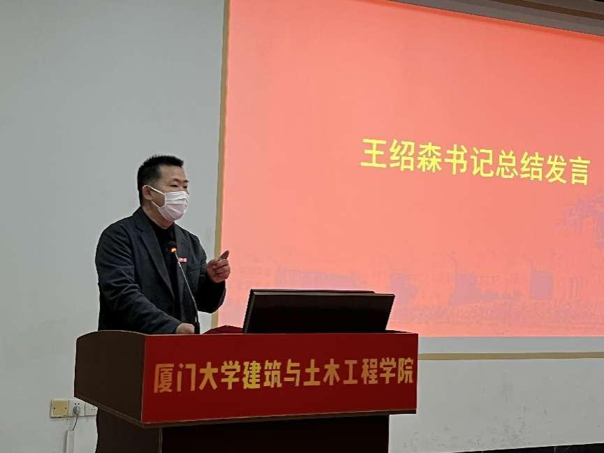 学院党委书记王绍森教授做大会总结,他对全体教职工为学院做出的贡献表示衷心感谢。他表示,学院将认真梳理各小组提出的意见和建议,弘扬“真抓实干,马上就办”的工作作风,抓紧落实,及时反馈。王绍森希望全体教职工深入学习贯彻习近平总书记致厦门大学建校100周年的贺信精神,深刻领悟“两个确立”的决定性意义,增强“四个意识”,做到“两个维护”,坚定政治方向,坚持为党育人、为国育才,努力塑造大胸怀、大境界、大格局,时刻保持使命感、责任感、紧迫感、危机感,齐心协心推进学院各项事业的发展,以实际行动迎接党的二十大胜利召开。