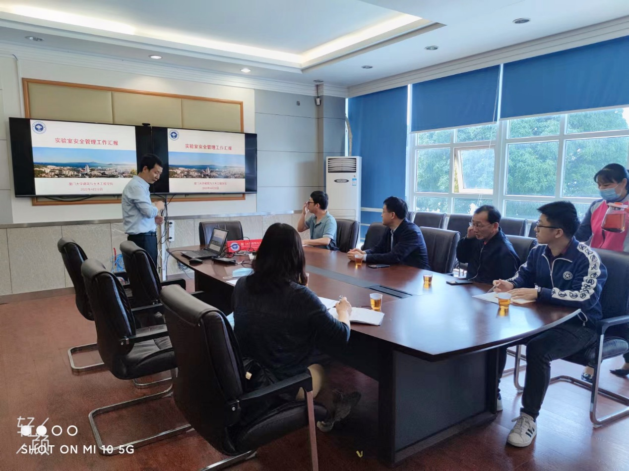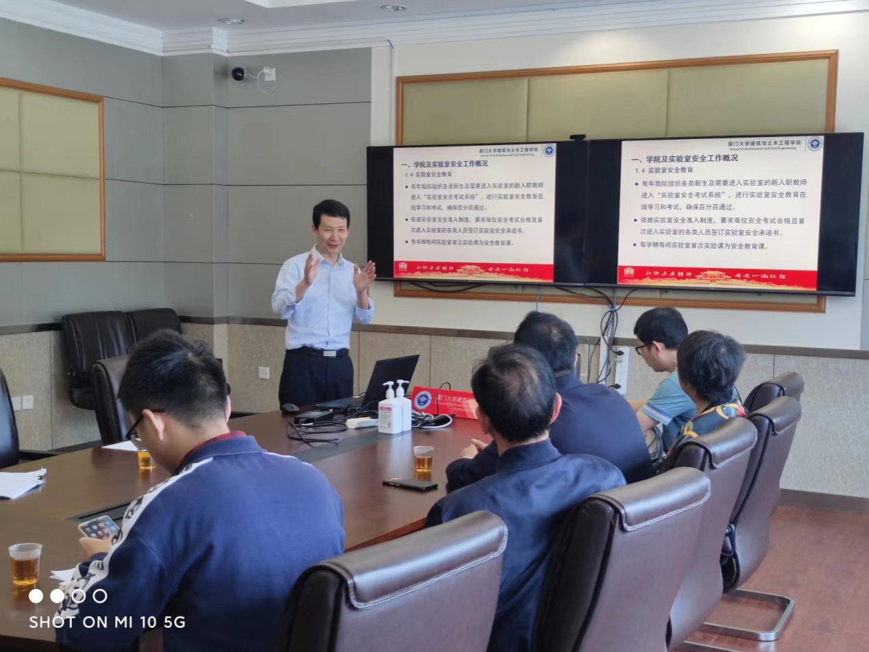 王东东代表学院对检查组的到来表示热烈欢迎,并围绕我院实验室基本情况、安全责任体系、安全工作整体情况、安全自查自纠与整改情况、实验室安全教育、实验室安全管理信息系统使用情况等方面进行了详细汇报。王东东表示,实验室安全问题是学校安全稳定工作的重要组成部分,现场检查既是对我院实验室安全工作的健康体检,更是进一步提升我院实验室安全管理工作水平的有利契机。