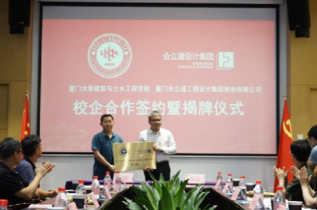 会上,王绍森、曾志泓代表双方签订《校企合作协议》,共同为“厦门大学建筑与土木工程学院——厦门合立道工程设计集团股份有限公司校企合作研习基地”揭牌。