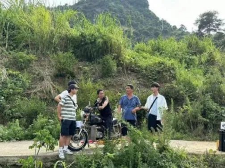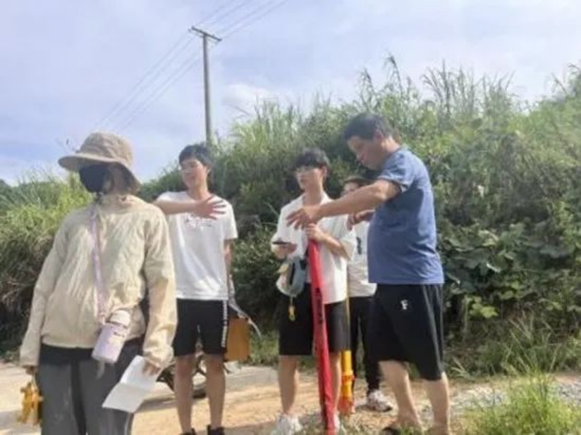 (参赛队员在北溪村水井堡桥址现场踏勘并与当地居民访谈)