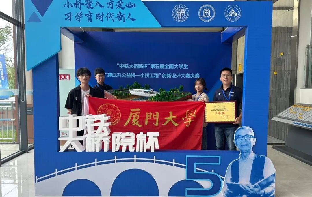 厦门大学1队以设计作品“榄枝桥”获得大赛二等奖。参赛队伍由2020级土木工程专业本科生梁锐鸿、贾坳錡、范思盈、蓝红星,2021级土木水利专业硕士研究生徐鹏海组成,由土木工程系高婧教授、许志旭工程师指导。历时一个多月,团结协作、辛勤付出,成功闯进决赛,并在决赛65个高校队伍的激烈角逐中,以设计作品“榄枝桥”夺得大赛全国二等奖。