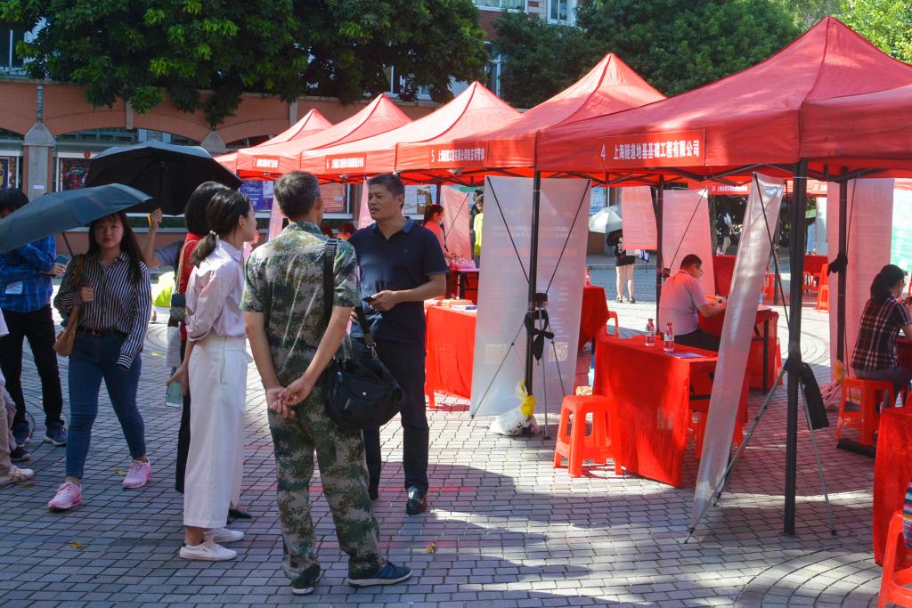 为推动学生们实现更高质量和更充分就业,搭建用人单位与毕业生优质的双向选择平台,9月19日,上海市城乡建设和管理委员会人才服务考核评价中心、上海市住房保障和房屋管理局人才服务考核评价中心、上海国际航运人才服务中心、厦门大学学生就业创业指导中心和厦门大学建筑与土木工程学院在三家村广场联合举办上海建设航运房地产行业厦门大学专场招聘会,现场吸引了不少学生前来咨询应聘。