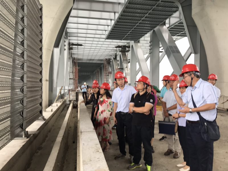22日上午9时,抵达松下码头,乘船出海考察,观察大桥的建设进展情况。在船上,王东辉等人大家介绍了大桥的建设情况,双方就桥梁建设问题进行了交流随后,一行人登上已合龙的元洪航道桥考察观摩,并对大桥的施工建设中遇到的技术问题进行了交流探讨