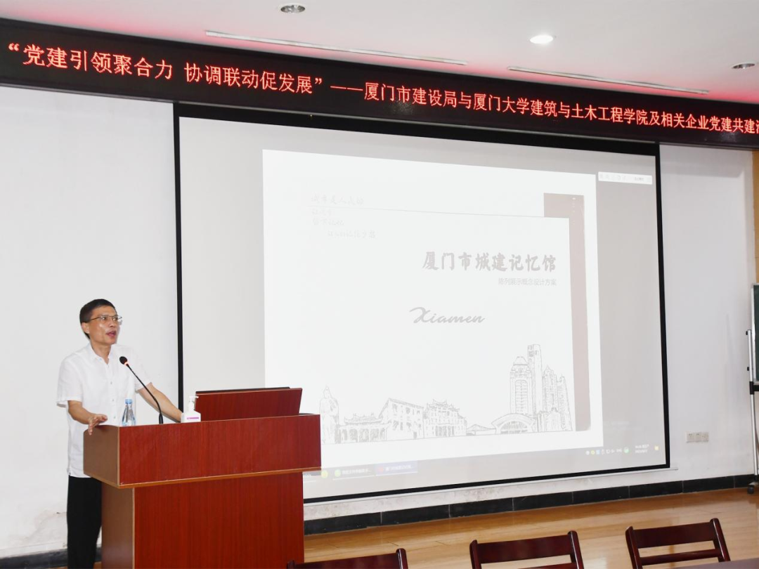 9月22日下午,厦门市建设局机关第四党支部与厦门大学建筑与土木工程学院、建筑设计研究院、城乡规划设计研究院在曾呈奎楼118报告厅联合举办“党建引领聚合力,协同联动促发展”党建共建交流活动。本次活动由厦门大学建筑与土木工程学院副院长张燕来主持。