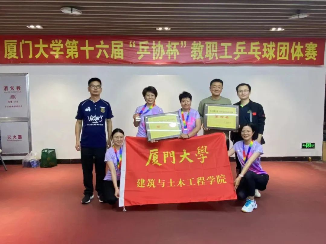11月25日,厦门大学第十六届“乒协杯”教职工乒乓球团体赛在建文楼举行。由李梅、陈兰英、张苏娟、李芝也四位老师组成的建筑与土木工程学院女子乒乓球队,经过激烈角逐,最终为学院夺得首个女子团体冠军。