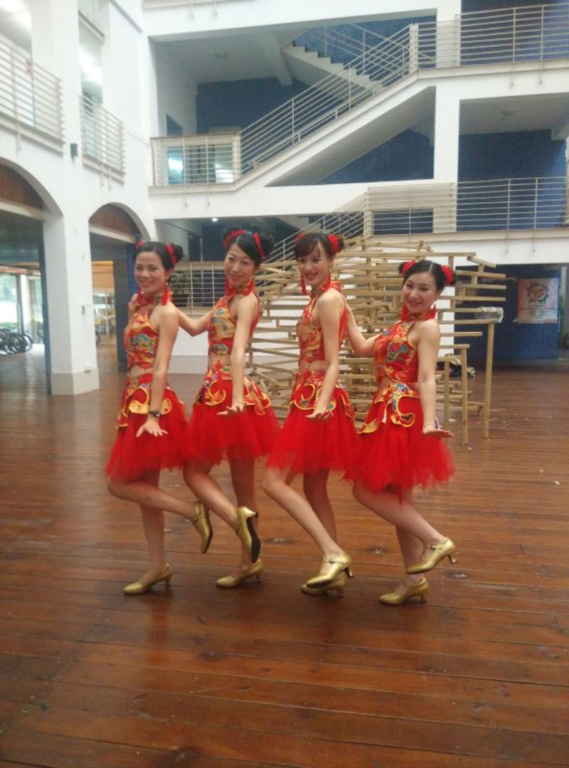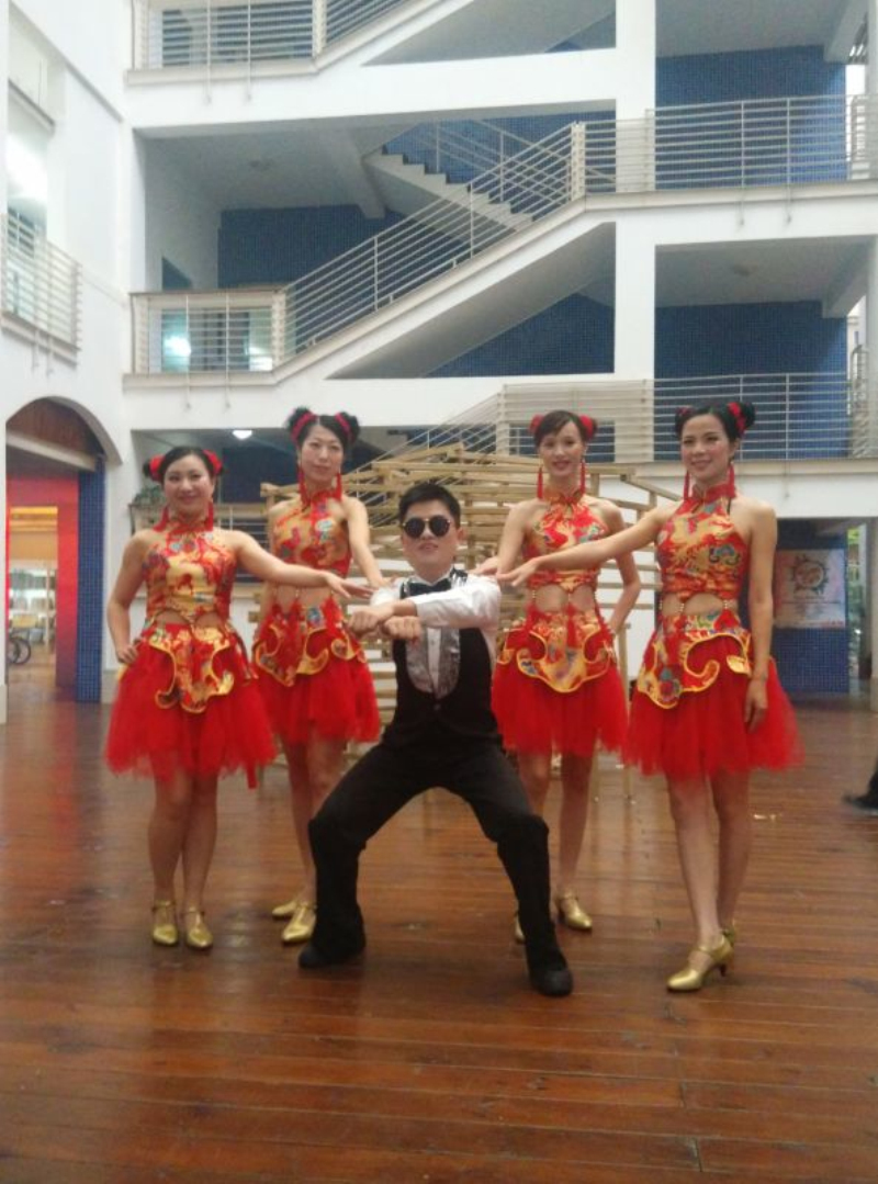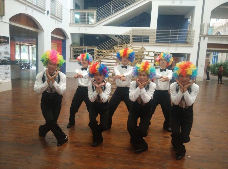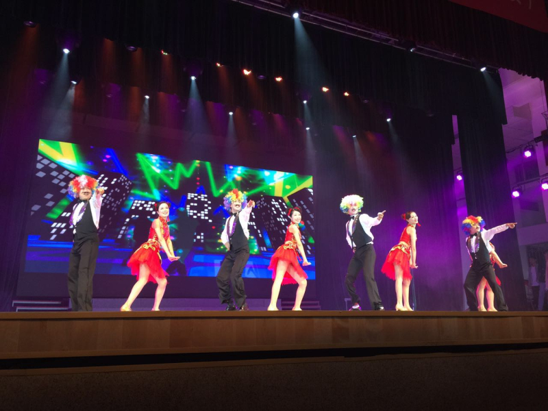 当音乐响起,老师们伴着节奏,跳起了风格独特的踢踏舞,带动起了场面的气氛。而后由三位老师高声演唱的《歌唱祖国》更顺势将表演一步步推向高潮,最后最激情火辣的骑马舞点燃了全场,尖叫声鼓掌声不绝于耳。