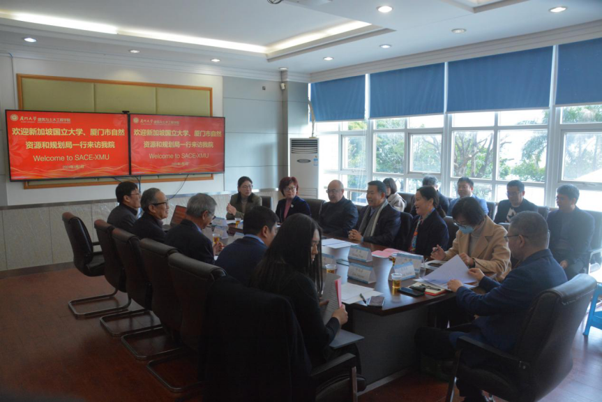 3月3日下午,厦门大学建筑与土木工程学院、厦门大学城乡规划设计研究院联合举办了与新加坡国立大学城市中心的交流座谈会,并特邀厦门市自然资源和规划局共同参与,旨在探讨在建筑学、城市规划和土木工程等多领域的潜在合作机会。新加坡国立大学城市中心主任邱鼎财教授一行,厦门市自然资源和规划局总规划师黄英、城市设计处副处长赵静,建筑与土木工程学院党委书记王绍森教授,副院长张燕来教授,副院长张若曦副教授,城市规划系主任许旺土教授、赵燕菁教授等;厦门大学城乡规划设计研究院院长郑灵飞,副院长黄友谊出席活动。