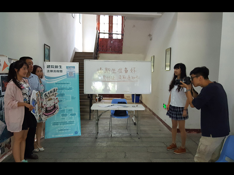 7点开始,一张张朝气蓬勃的面孔陆续涌入校园,学院新生在各站点志愿者的引导下,到达映雪楼进行注册。学院在接新生之前,已经通过网络媒体平台,提前告知新生相关的报道事宜,方便新生一入校就能够顺利地完成报道手续。