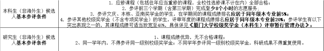 3.凡已获得文庆、本栋、亚南奖学金的本科生和研究生,原则上不再参评这三项奖学金。
