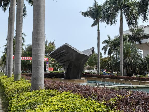 坐落在西门附近的雕塑,被大家亲切地称为“鸟书”,每到固定时间,水池中便会有喷泉交错,为宁静的雕塑装点一份灵动与活泼。