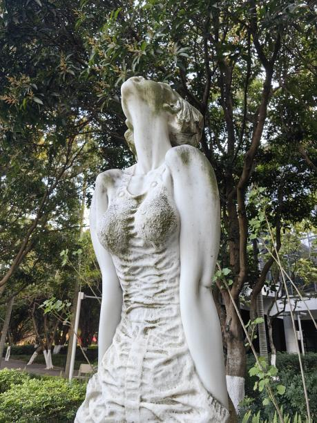 位于厦门大学艺术学院旁的树林里,孤寂而恬静地矗立着一尊孔子雕像。这座雕像是对中国古代哲学家、教育家孔子的一份敬意,也是这片树林的一处文化符号。孔子雕像栩栩如生,神情庄重而深邃,仿佛在沉思着千年来的人生智慧。他的头顶被一圈圈虬髯环绕,细腻的衣纹仿佛在微风中轻舞,似乎在述说着历史的沉淀与智慧的传承。