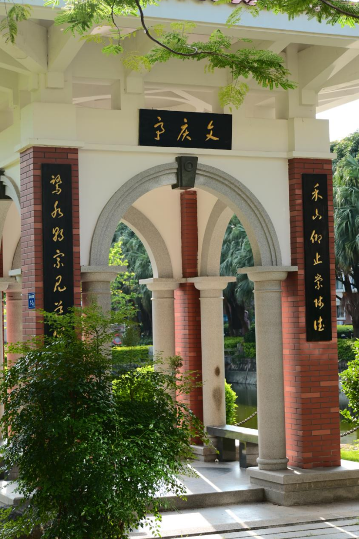 2008年校庆期间,林文庆汉白玉雕像在亭子旁边落成,每每亭边路过,都会被先生凝眸远眺之资所吸引。抬头看向亭上的横批,我每次都会将“唯文有庆”念成“唯有文庆”。作为私立厦门大学时期任期最长的校长,林文庆先生为了实现陈嘉庚发展祖国教育事业的崇高理念而放弃了优渥的社会地位,殚精竭虑十六年,在厦门大学期间培育专门人才,推动科学教育与国学研究,对华人教育现代化和儒学文化传承作出了卓越贡献,将厦大从岛上的荒凉一角建成一座规模宏大的学府。