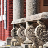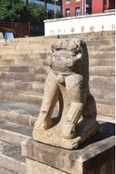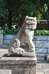 拱廊石椅下精致的雕刻出欧式涡卷,中西结合。