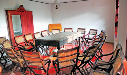 楼内二十间房室按历史原貌陈列,二层东走道尽头的会议室不过27平方米,却举行了决定红军命运的重要会议。屋子中央陈列着一张板栗色的长方桌,四周围着一圈木边藤心折叠靠背椅,共20只,这便是出席遵义会议人员的座位。东壁有一只挂钟和两个壁柜,其中一个壁柜上嵌着一面穿衣镜;西壁是一排轩亮的玻璃窗,透过窗户,仿佛能看到外面风起云涌的革命浪潮。