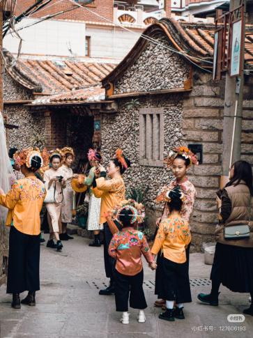 起初,是零星的快门声。某天,一位头戴“簪花围”的姑娘,以那片灰白嶙峋的蚵壳墙为背景,拍下了一张照片。她发梢的春色与墙体的沧海,在镜头里碰撞出奇异的火花。这张照片,像一枚投入静湖的石子。紧接着,是成百上千的模仿者。古老的蟳埔女习俗,遇见了社交媒体的算法,瞬间被点燃。