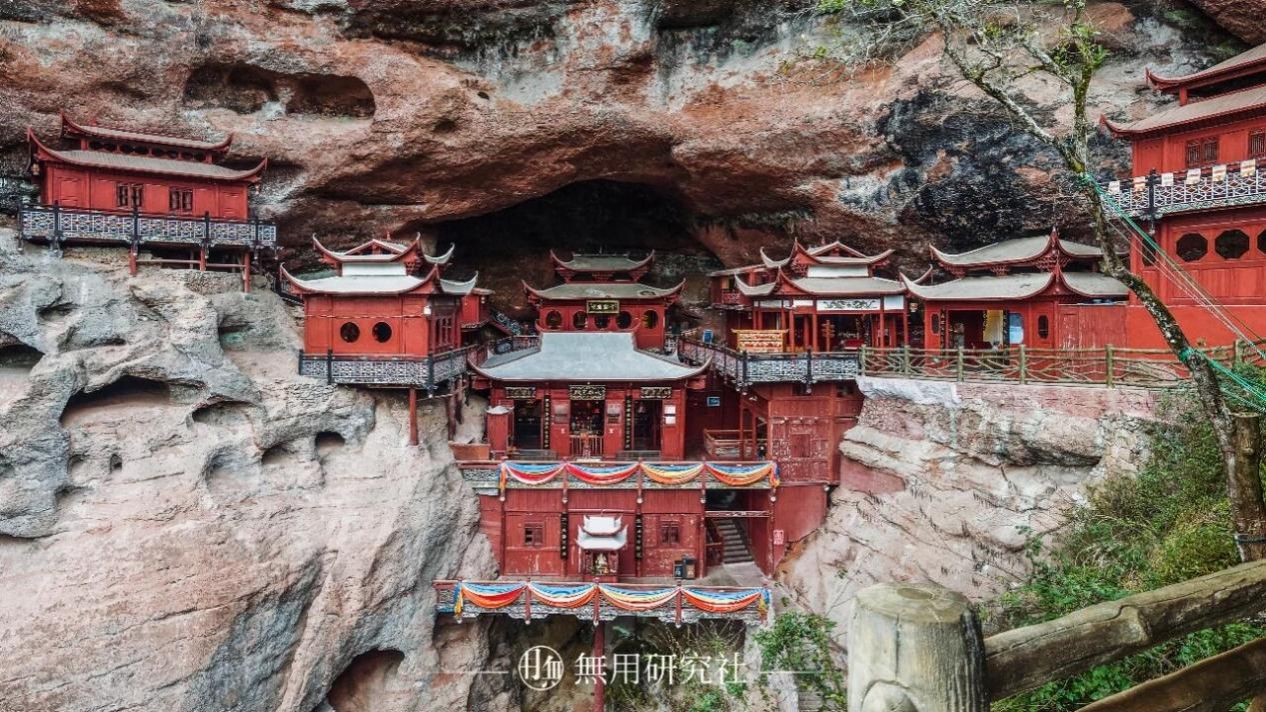 它不争山高,只借赤石为背。不盖片瓦,却任甘露自滴,900年薪火不断。在这里,没有一钉一铆,全凭木质构件的榫卯咬合,一根“状元柱”便撑起整个殿宇。轻摆的飞檐翘角像老僧合掌,稳稳托住信仰的千钧。晨雾起时,寺体浮在赤壁半腰,仿佛仙人随手把经书塞进石缝,风翻页,光诵经。