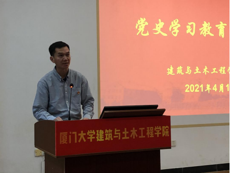 414日下午,建筑与土木工程学院在曾呈奎楼118报告厅召开党史学习教育动员大会。学院党委书记、院长王绍森教授做动员讲话,对学院开展党史学习教育进行部署。学校党史学习教育第二指导组副组长、校巡察员李招淡出席会议并讲话。大会由学院党委副书记黄俊清主持。