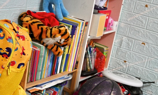 (这里带几个标签:房间凌乱?桌椅尺寸不合适?三个小朋友空间分配?)