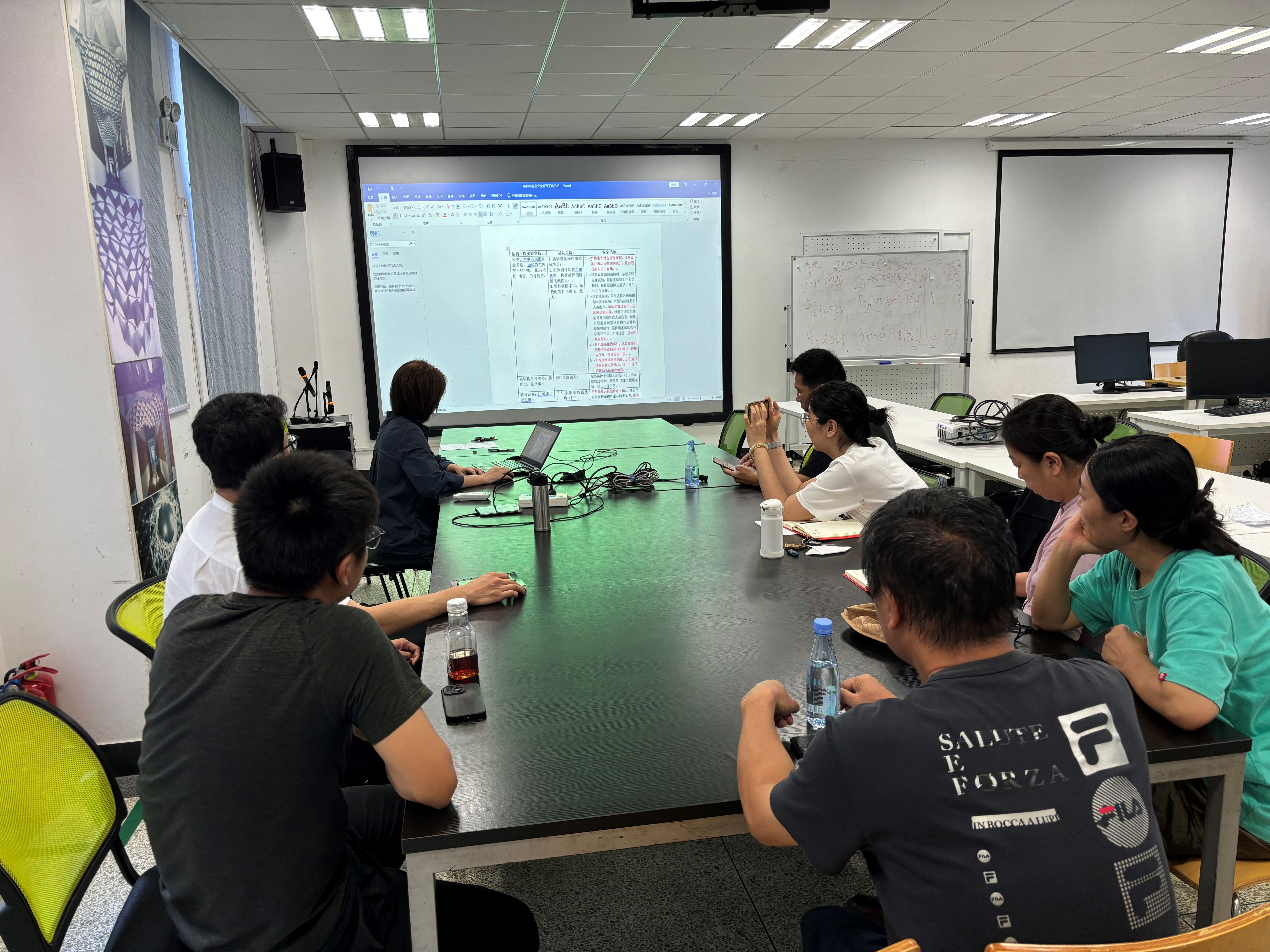 首先,王东东对实验中心近期工作做了指导性意见,强调实验室安全是教学科研工作的基石,要树立底线思维,始终将安全放在首位,切实做好实验中心的日常管理工作。接着,邱鲤鲤传达了学校安全管理培训的相关精神和要点,包括实验室综合管理平台、信息化工作的重点。之后,陈兰英结合结构工程实验室的特点及风险点,传授了丰富的安全管理经验,并分享结构工程实验室编写的安全管理制度、安全教育PPT及消防演练、实验室准入制度、实验指导书等资料。凌亦欣分享了建筑造型实验室的通识安全教育与KUKA机器人实操实验的安全注意事项,并展示了通过制度上墙、制度数字化结合二维码上工作台等加强安全教育的手段。