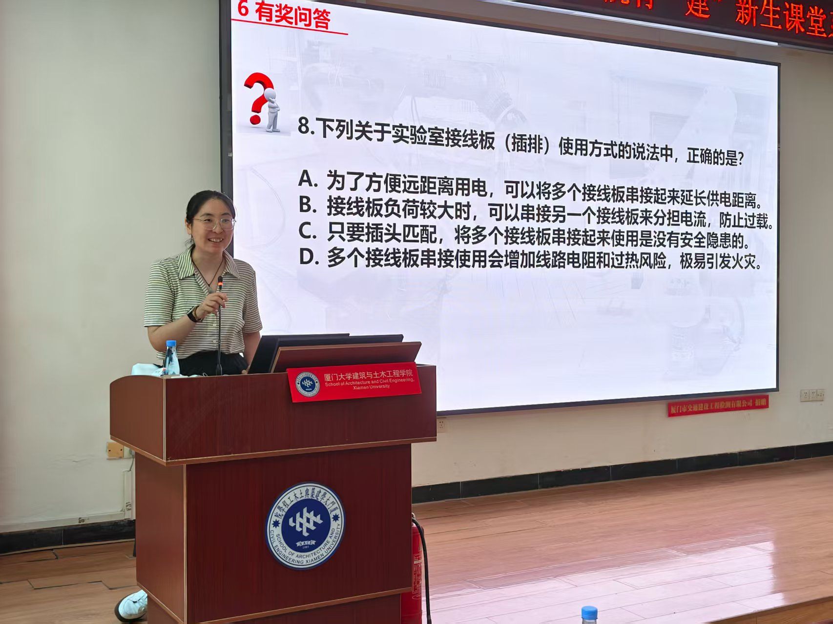 为全面筑牢校园安全防线,增强新进师生的安全意识,我院于2025年9月4日在嘉庚五301教室与曾呈奎楼118报告厅面向新生及新进教师,举办了两场实验室安全教育专题活动。2025级本科生、研究生以及新进教师副教授李轶贤、助理教授许明赛、助理教授叶征冰、辅导员余雅雯、行政人员陈思佳等共同参加。