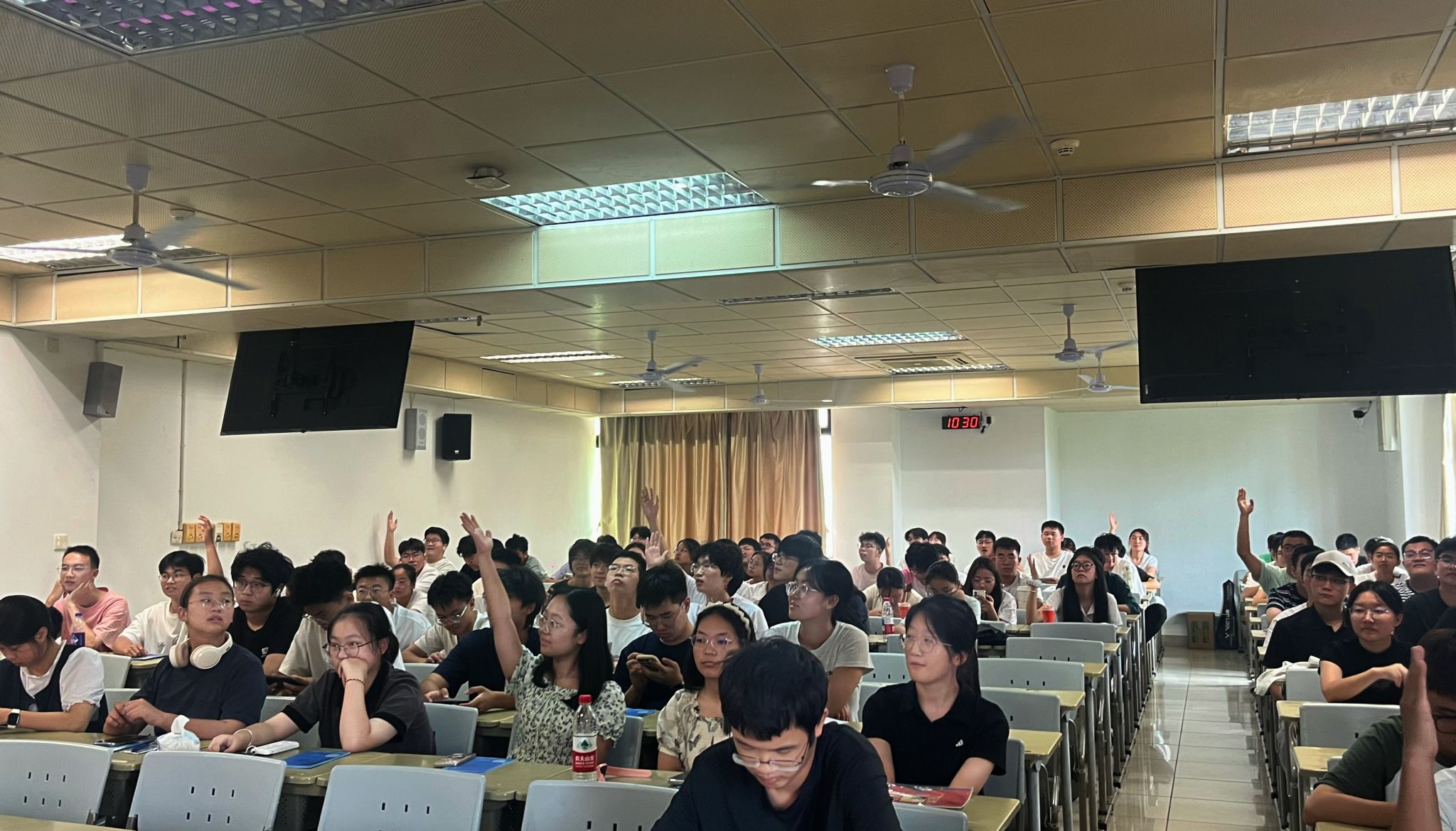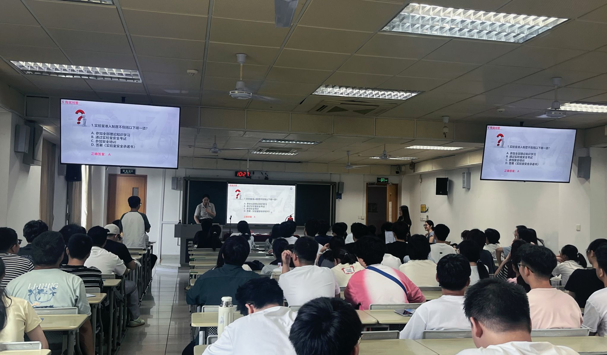 知识讲解后,凌亦欣、辅导员陈韬澜及余雅雯组织了有奖问答,同学们踊跃参与,巩固了所学知识,并收获了鼠标垫、卡套等奖品。在轻松活跃的氛围中,大家既收获了礼物的喜悦,又增长了实验室安全知识,现场掌声和笑声不断。