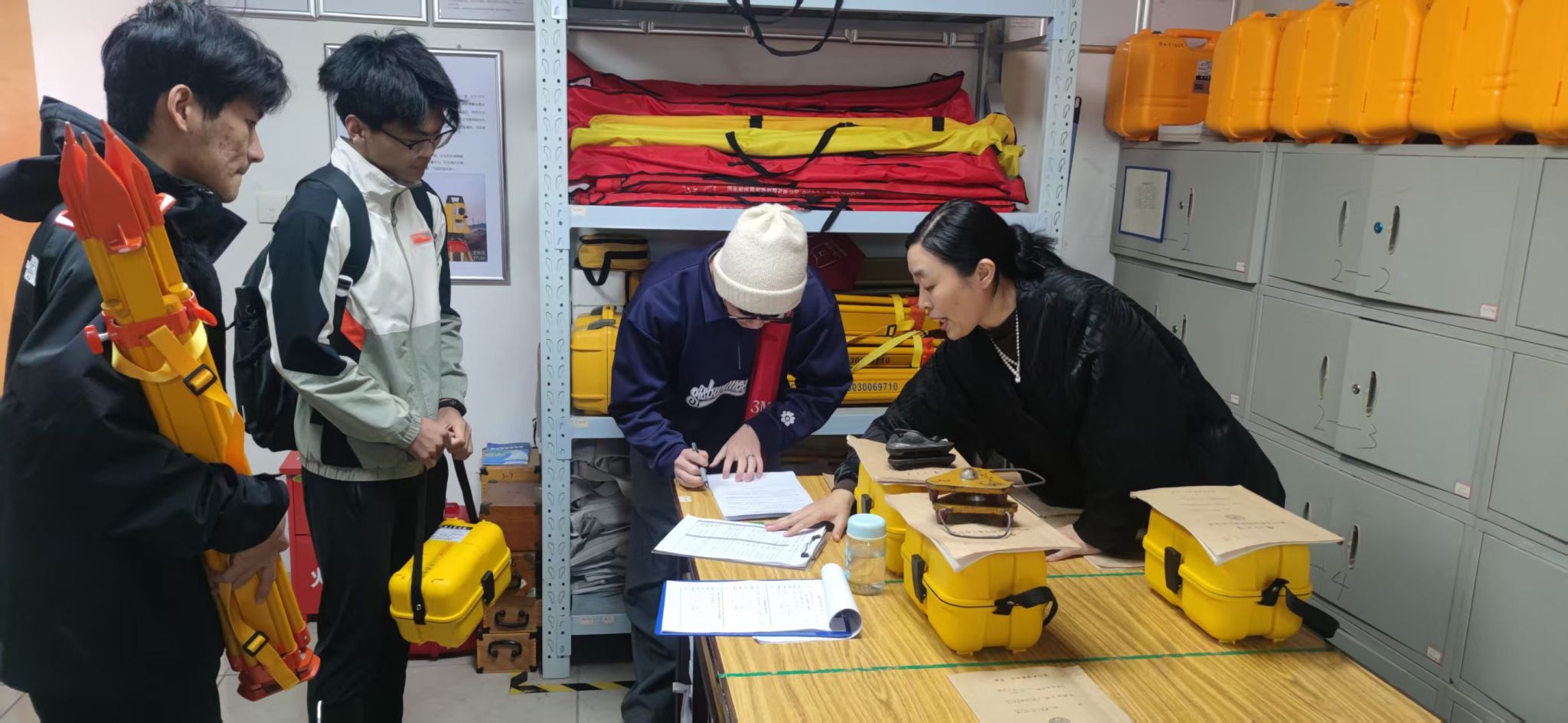 在《测量原理与智能测量》课程的实验教学中,工程师王晓虹在嘉庚五303工程测量实验室结合具体实验任务,为同学们讲解仪器操作流程以及相关安全注意事项。